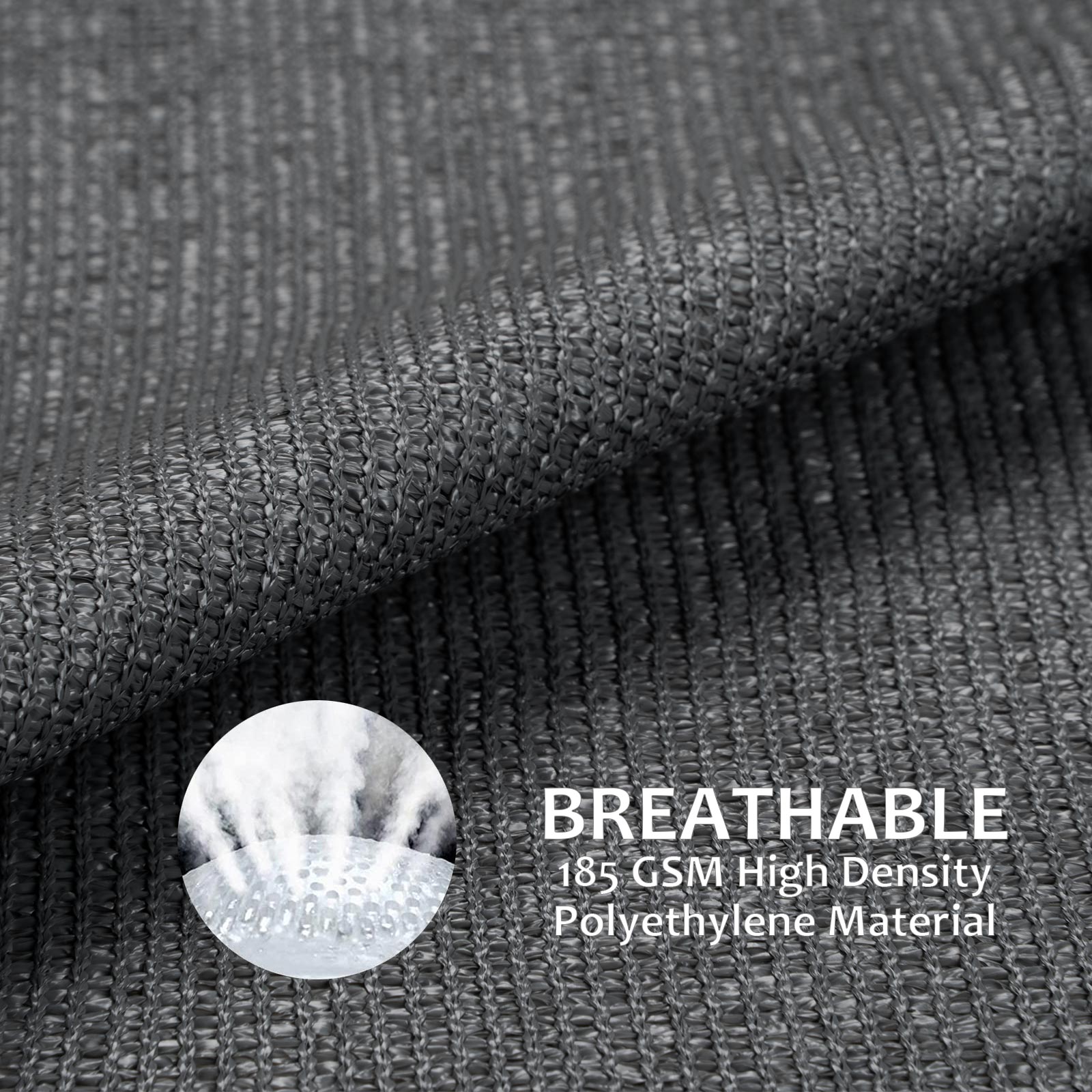 • Material: The sail shades for garden are made of 185 GSM high density polyethylene (HDPE) fabric. The woven knitted fabric is breathable and permeable, allows cooling breezes and light to pass through for a more comfortable space.