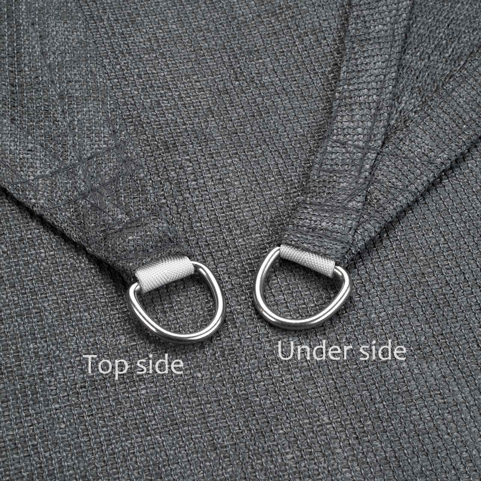• Curved Edge & Strong Stitching: The right angle triangle sunshades are sewn with strong stitching and durable stainless steel D-rings in each corner. The reinforced stitched seams are curved to increase pull strength and prevent dropping.